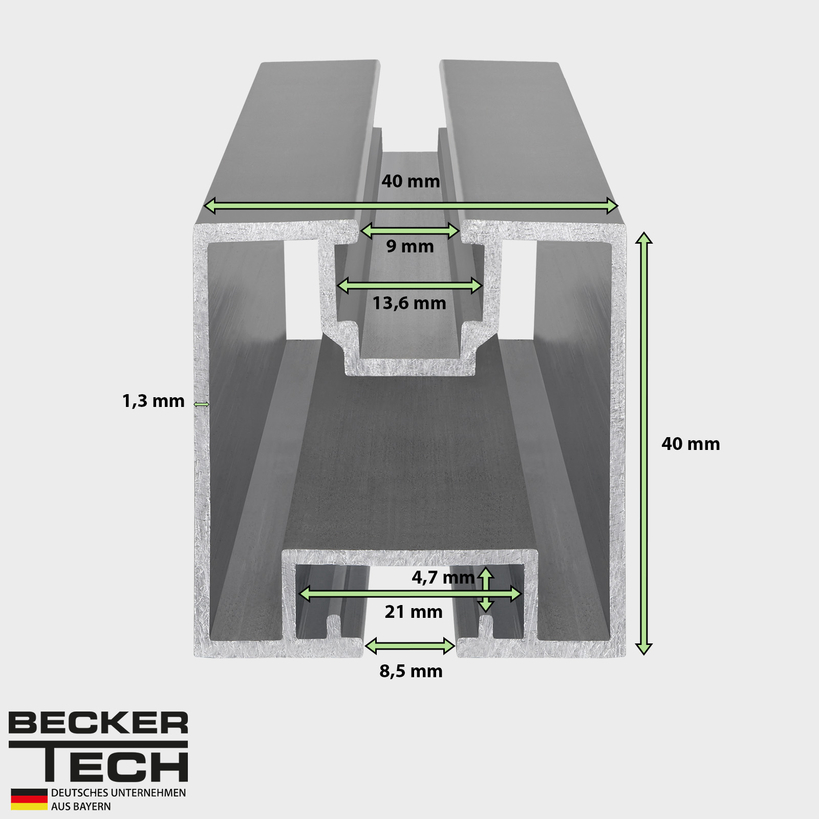 Montageschiene 40x40 mm Alu Profil 2 m | Geschäftskunden Steuersatz 19 %