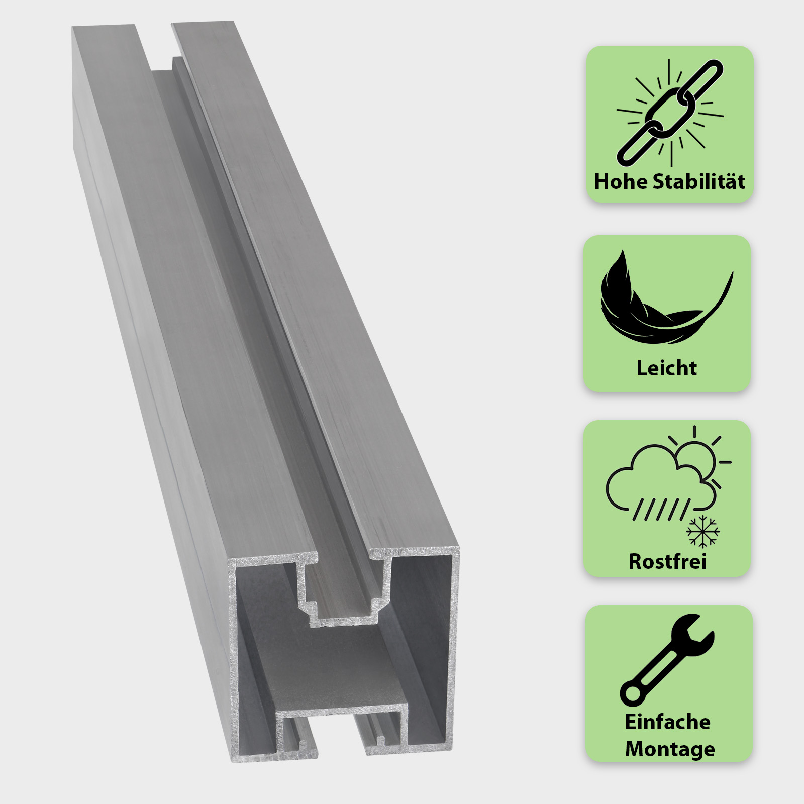 Die Montageschiene zur Befestigung von Photovoltaikmodulen besteht aus hochwertigem, korrosionsbeständigem Aluminium und bietet mit ihrem Querschnitt von 40x40 mm eine stabile und langlebige Grundlage für vielfältige Einsatzbereiche.