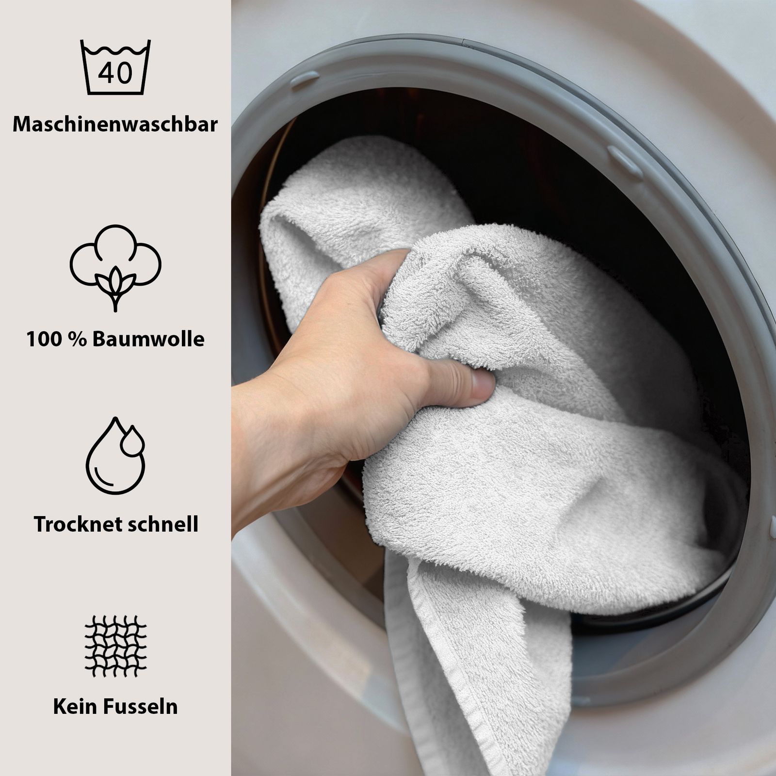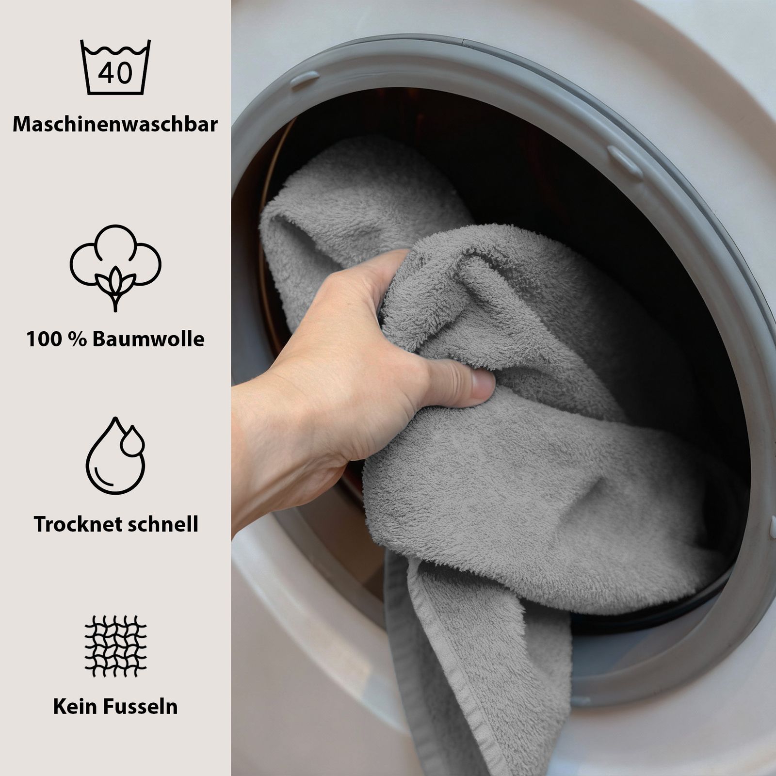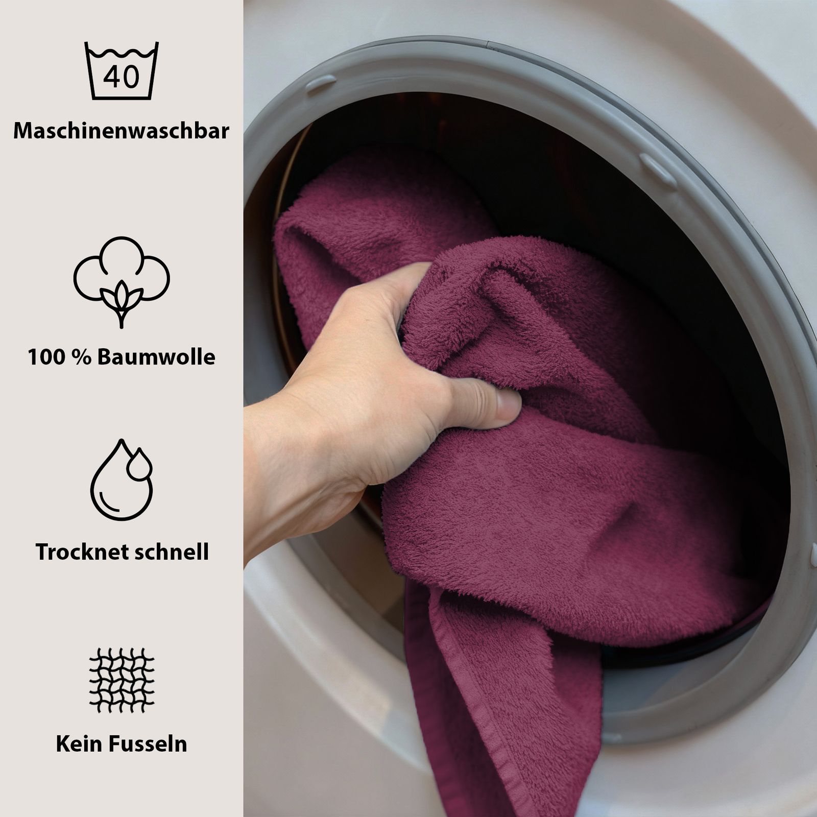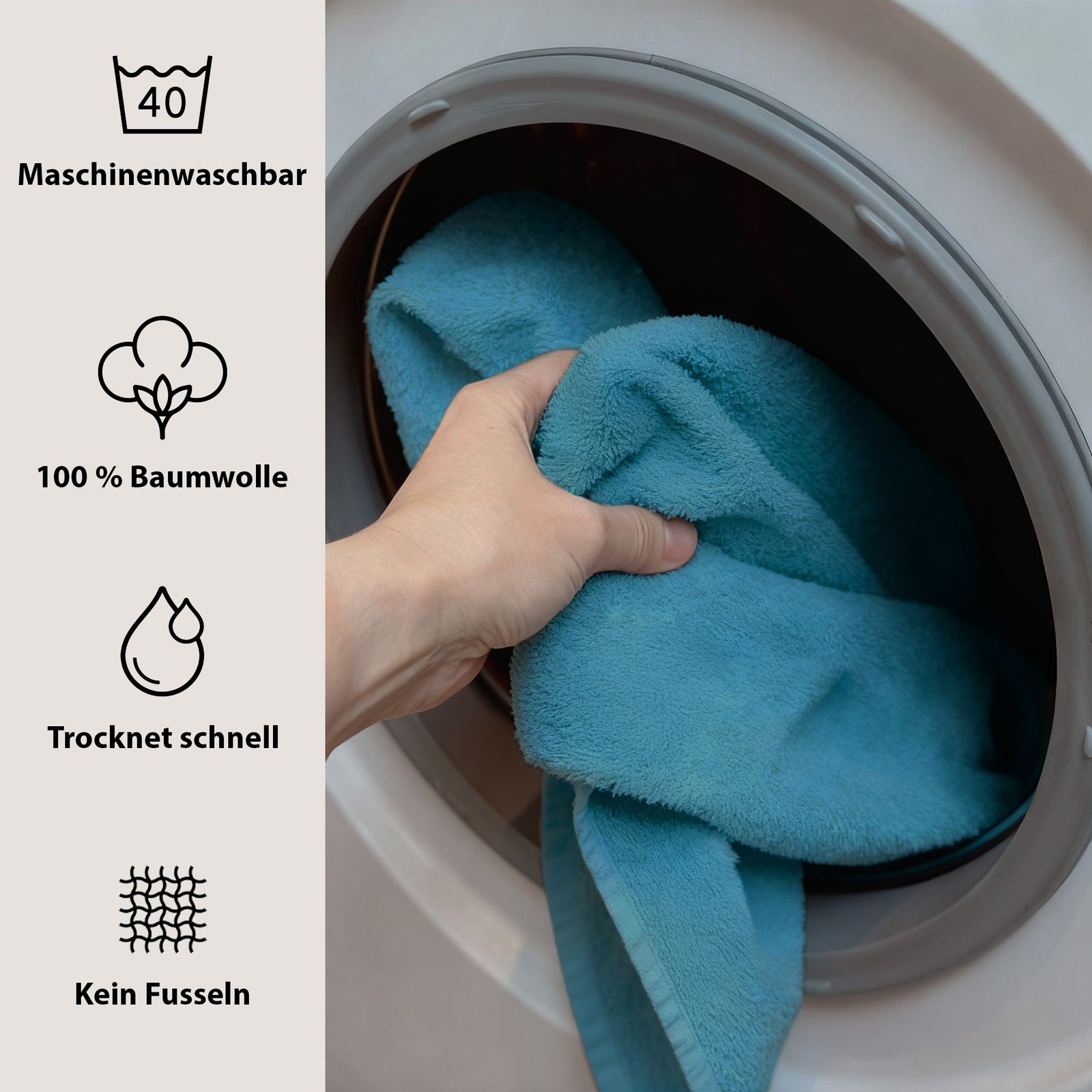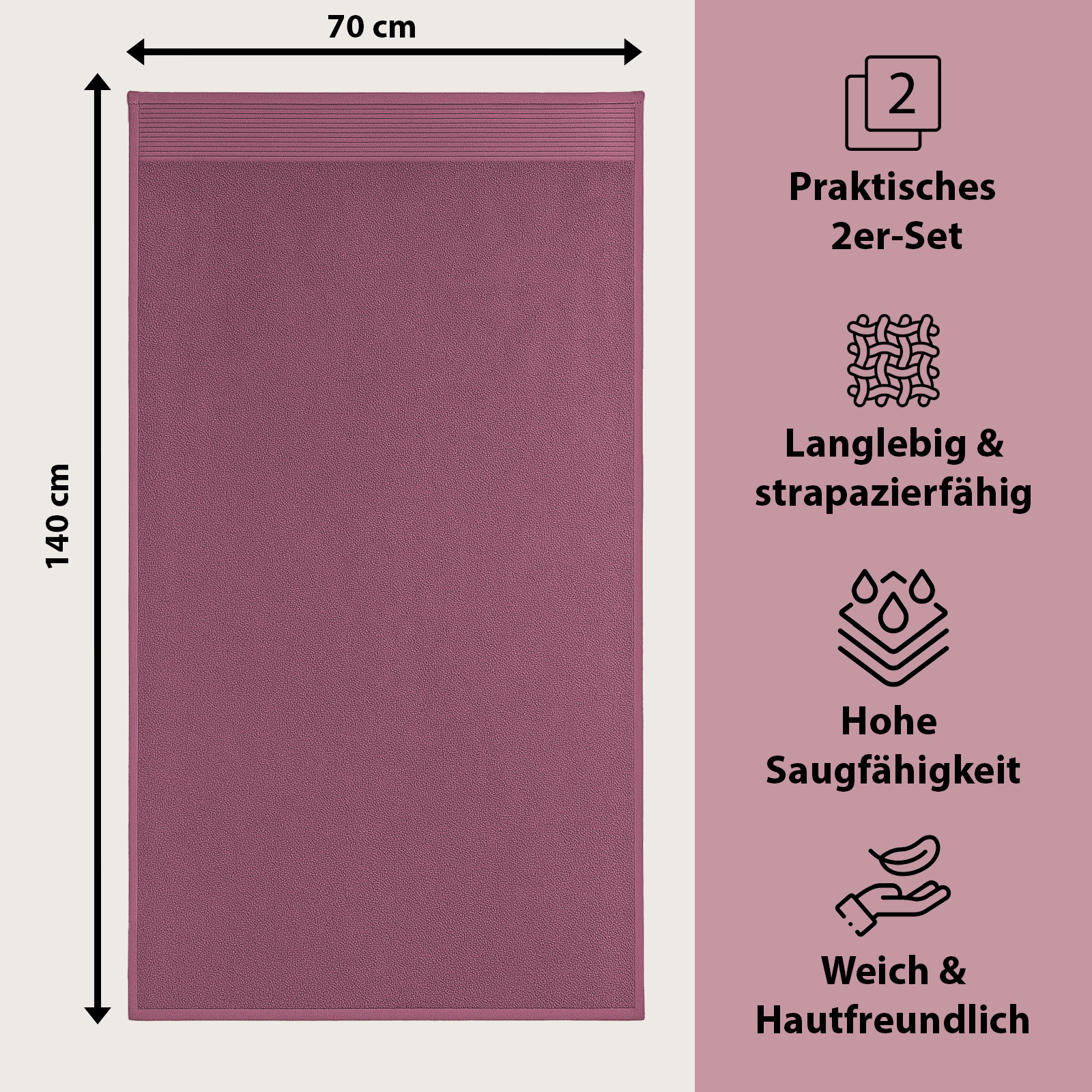 I colori eleganti - bianco classico, grigio moderno, petrolio fresco e prugna raffinato - si adattano a qualsiasi bagno e conferiscono al vostro bagno un tocco di eleganza senza tempo e accenti freschi. Pratico e versatile, è un asciugamano indispensabile per la vita quotidiana, la sauna o la spiaggia.