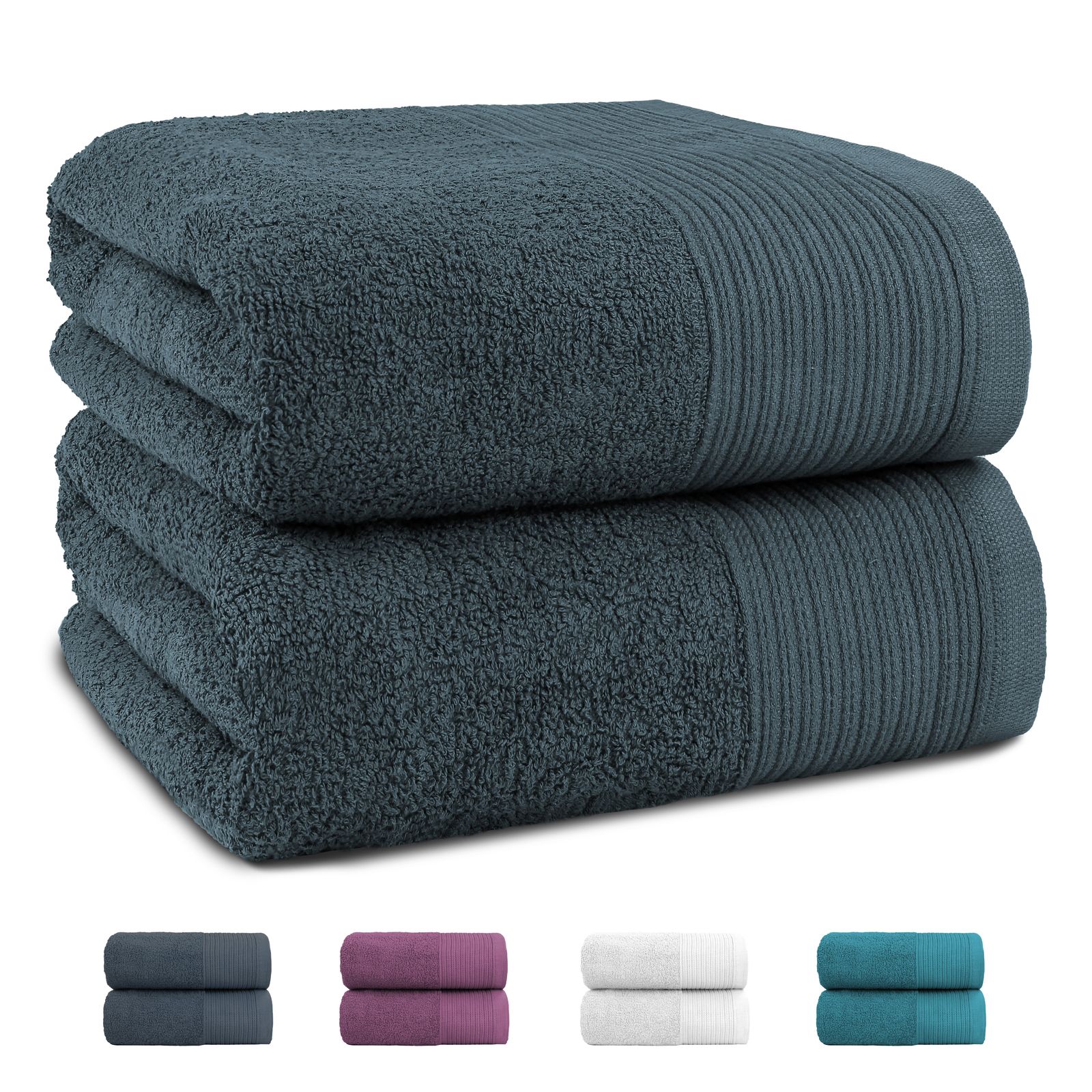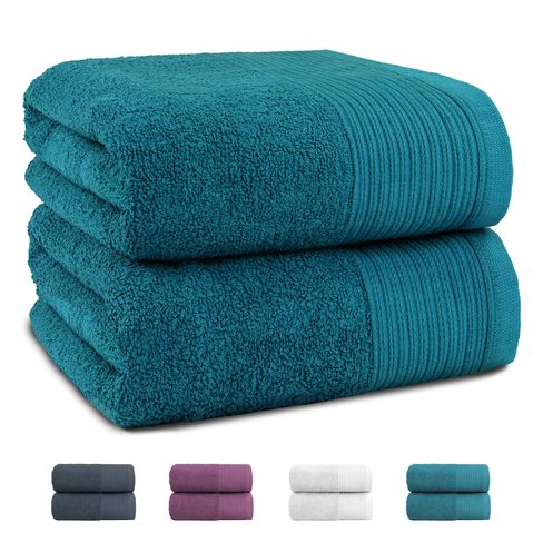 I colori eleganti - bianco classico, grigio moderno, petrolio fresco e prugna raffinato - si adattano con stile a qualsiasi bagno e conferiscono anche alla sauna, alla spa o alla spiaggia un tocco di eleganza senza tempo e accenti freschi. Che sia per l'uso quotidiano, per la prossima visita alla sauna o come pratico telo da mare, questo set da 2 è un compagno versatile.