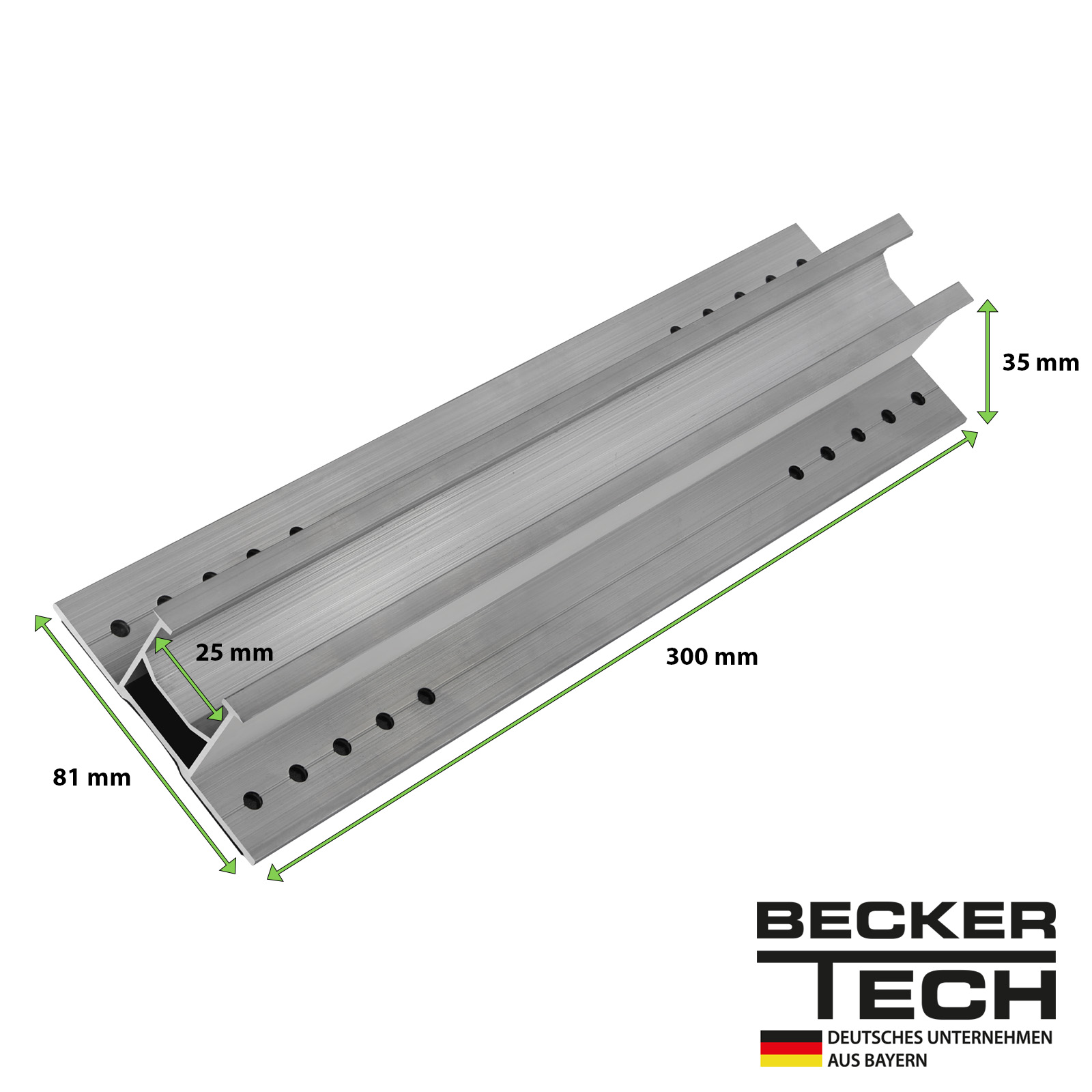 Mit insgesamt 20 Bohrlöchern pro Schiene lässt sich die Montage flexibel und passgenau an die Dachgeometrie anpassen – ideal sowohl für neue Installationen als auch für die Nachrüstung bestehender Photovoltaikanlagen.